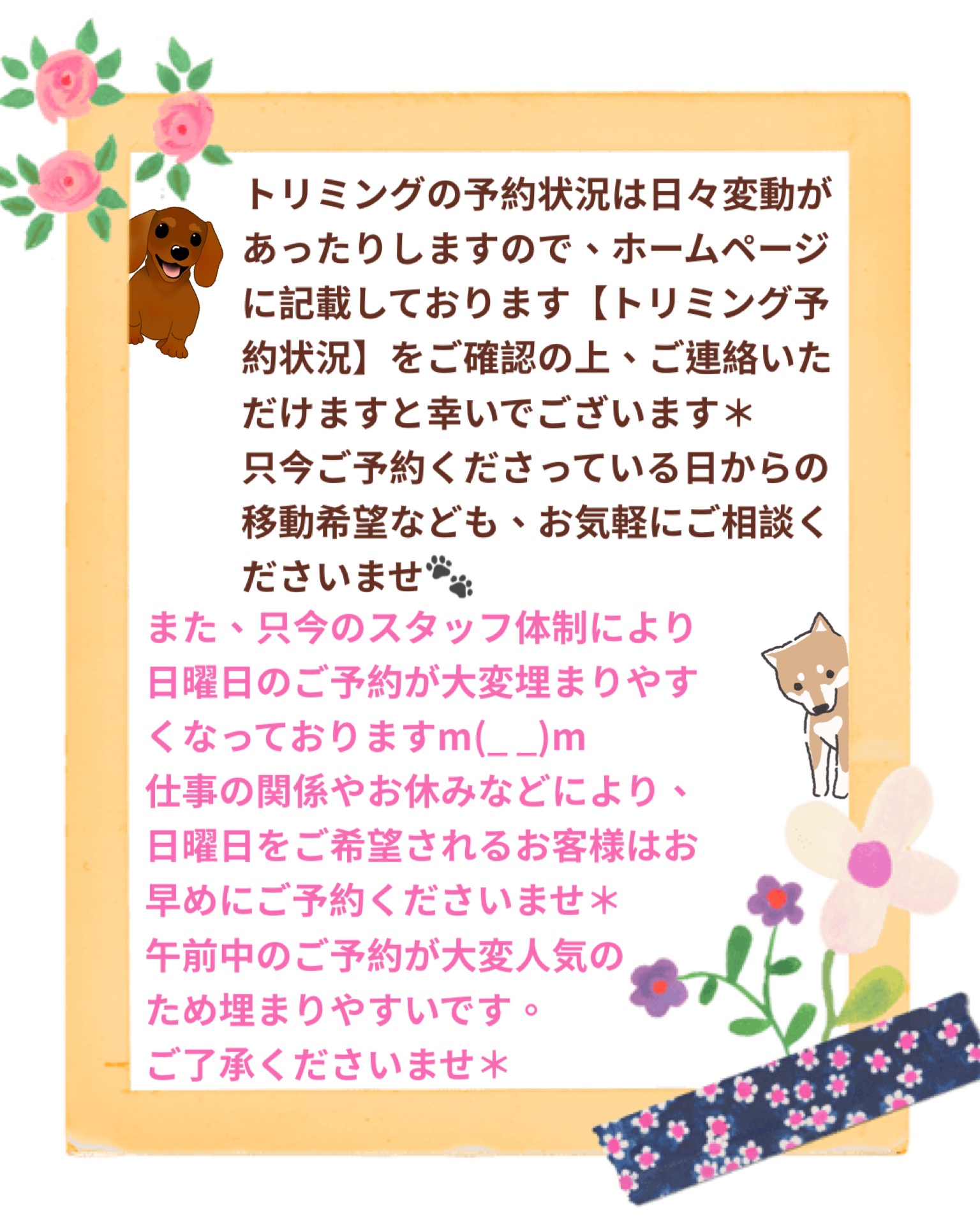トリミングのご予約におかれまして